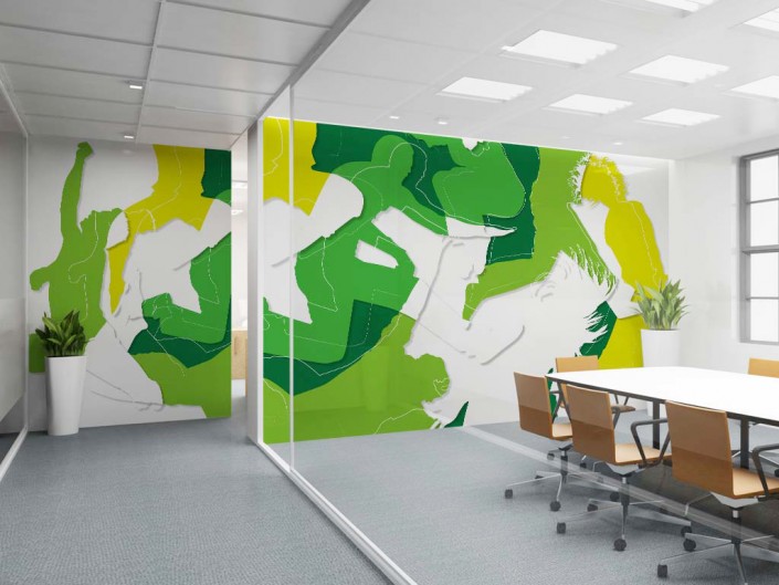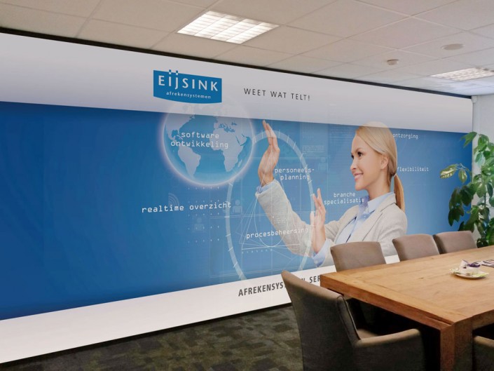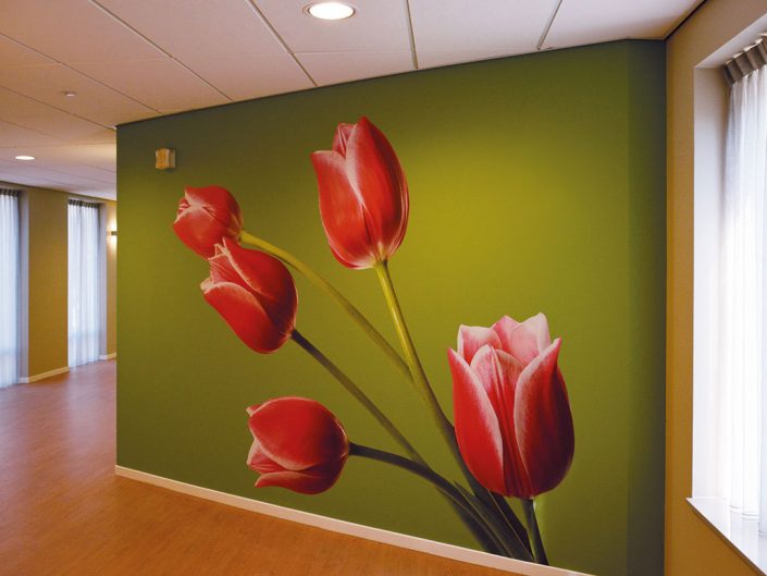 Denk hierbij aan grafische producties: wanddecoraties die perfect aansluiten bij een bedrijfsfilosofie, huisstijl of interieur.