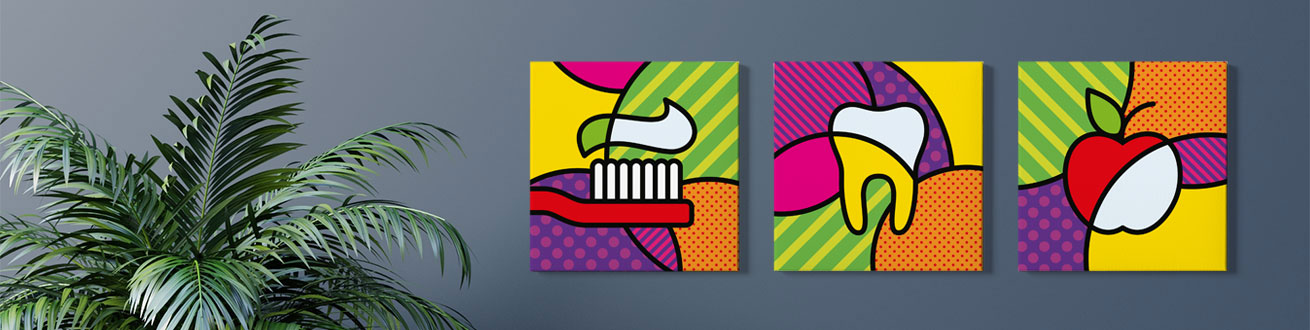 De vrolijke kunstwerken zijn eenvoudig te bestellen in onze webshop en verkrijgbaar op verschillende mooie materialen.