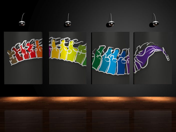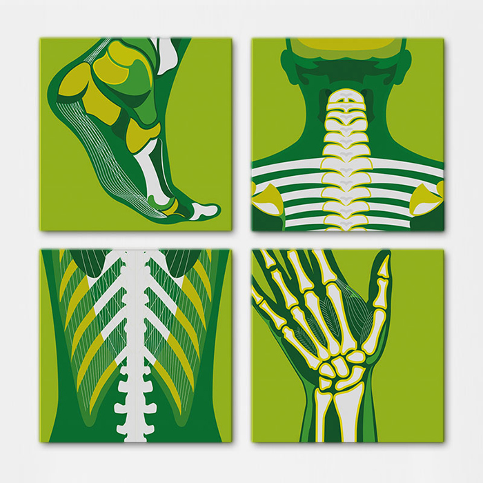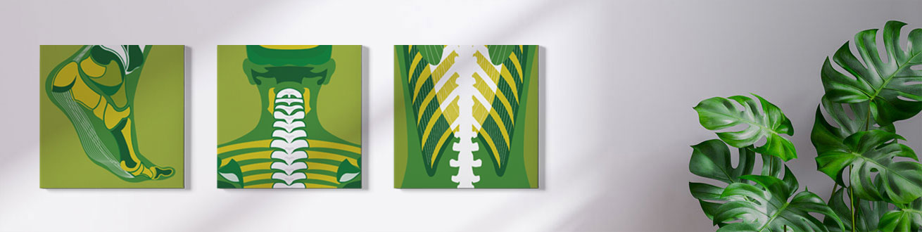Wanddecoraties, speciaal ontworpen voor de fysio praktijk, receptie en wachtkamer.