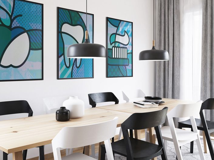 Unieke wanddecoraties, speciaal ontworpen voor praktijk, receptie en wachtkamer.